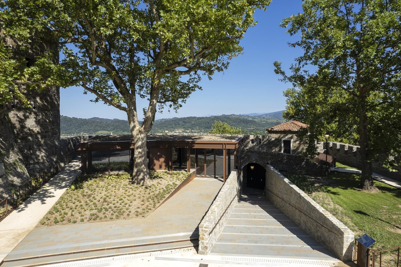 Il progetto ha previsto una completa riorganizzazione degli spazi aperti, restituendo ordine e qualità a un luogo dal forte valore identitario. Cuore dell’intervento è il nuovo padiglione contemporaneo, concepito come architettura leggera e trasparente, capace di dialogare con il contesto e di offrire un servizio multifunzionale a cittadini e visitatori.