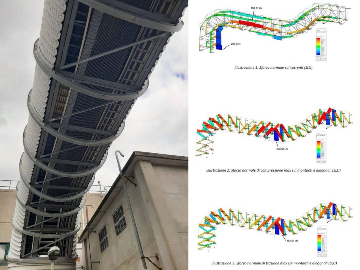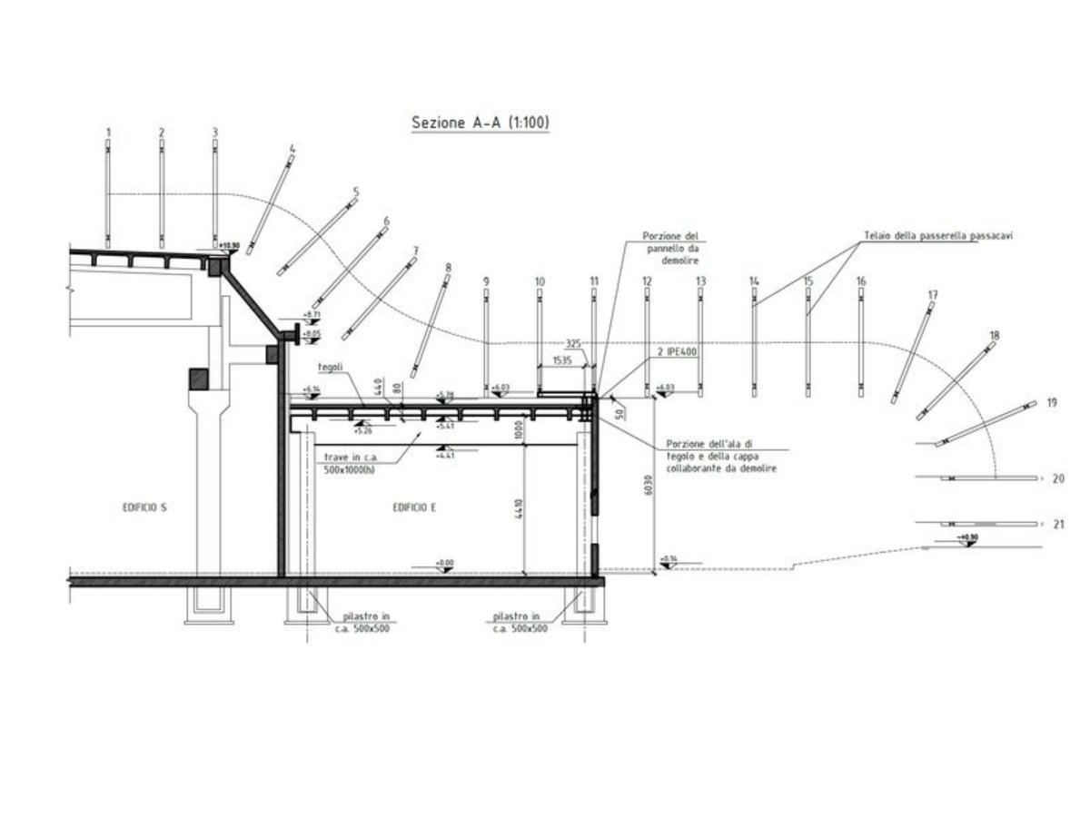 A oltre trent’anni dalla sua costruzione, MADS&ASSOCIATI è stato incaricato di curarne la manutenzione straordinaria: un intervento che ha richiesto incremento della capacità portante da 800 a 1500 kg/m attraverso l’introduzione di un nuovo appoggio intermedio sulla copertura, capace di garantire la piena sicurezza anche con i carichi aumentati dei sistemi di trasmissione.